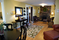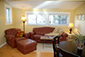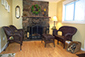 Living Room The Living Area of this quaint 1930 Bungalow is open and includes a Rock Fireplace on one end and a large picture window on the other. A 32 in. wall mounted flat screen Smart TV (not shown) & Comcast Xfinity Internet/Wifi is provided. The room features a cozy sitting area with large comfortable couches, Fireside chairs, Desk for your laptop, & Dining area adjacent to the Kitchen. The picture window faces the forested mountainside. Deer, elk & fox are a frequent sight. Guidebooks & local magazines filled with events, seasonal festivities, and places to see are provided.