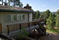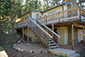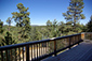 Exterior View of the House View shows the Wrap-around Deck, mountain valley to the north and the main stairway access to the Front Entrance of the House.